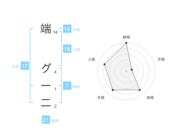 端 グー二さんの総格は21画の5点!