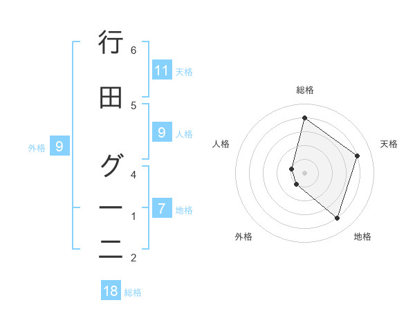行田 グー二さんの天格は11画の4点