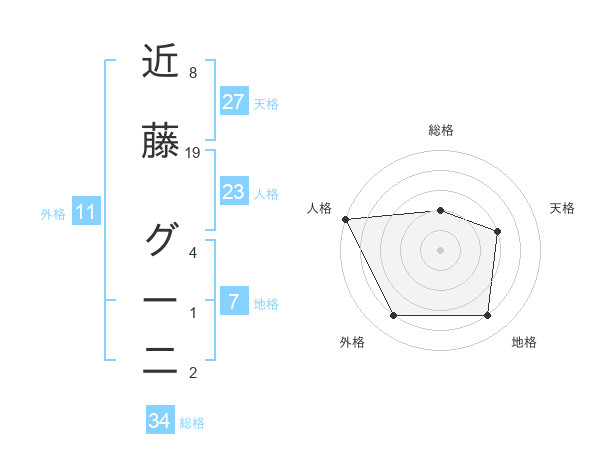 近藤 グー二さんを姓名の画数から五運を鑑定