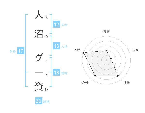 大沼 グー資さんを姓名の画数から五運を鑑定