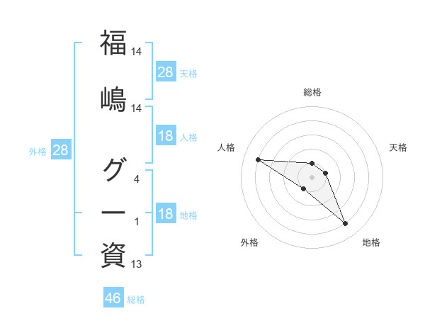 福嶋 グー資さんを姓名の画数から五運を鑑定