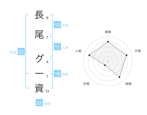 長尾 グー資さんの総格は33画の4点