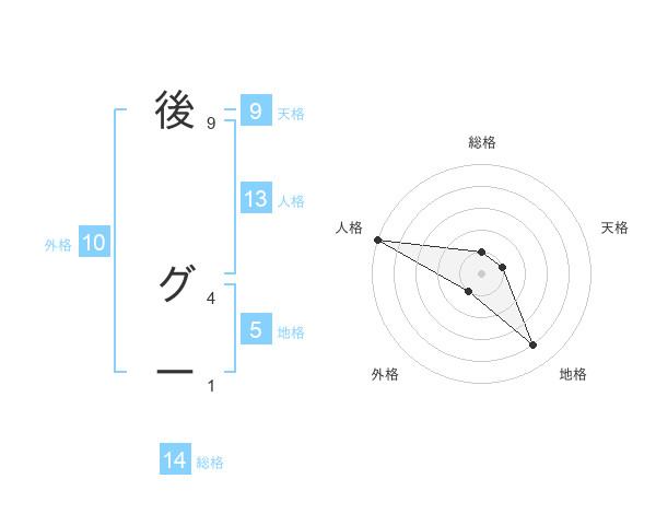 後 グーさんの総格は14画の1点!