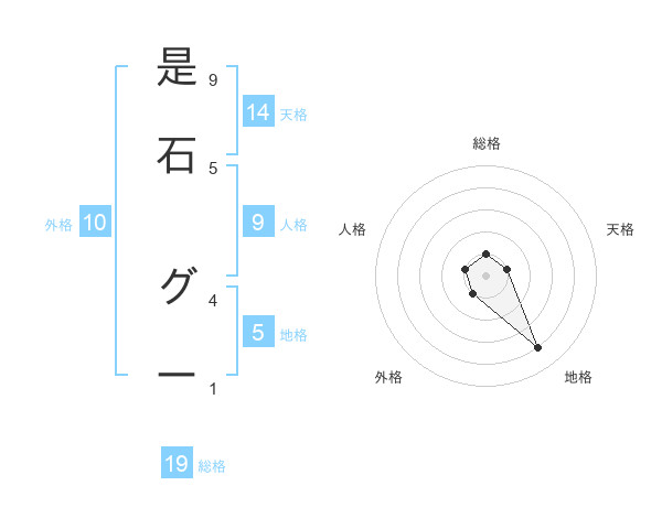是石 グーさんの地格は5画の4点!
