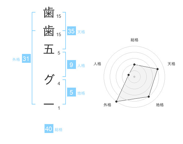 歯歯五 グーさんの天格は35画の4点!