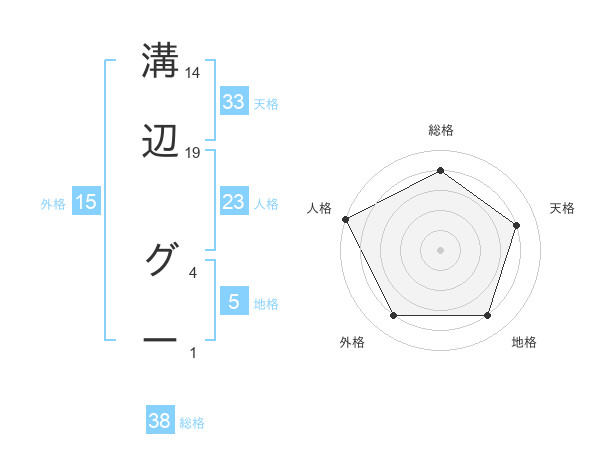 溝辺 グーさんの総格は38画の4点!