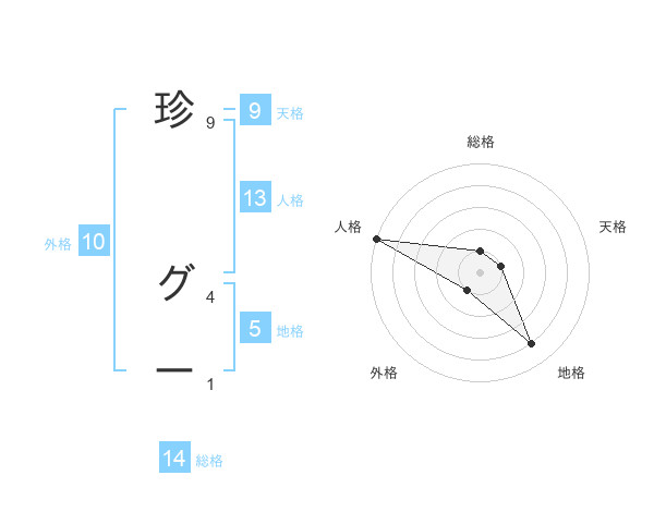 珍 グーさんの総格は14画の1点!