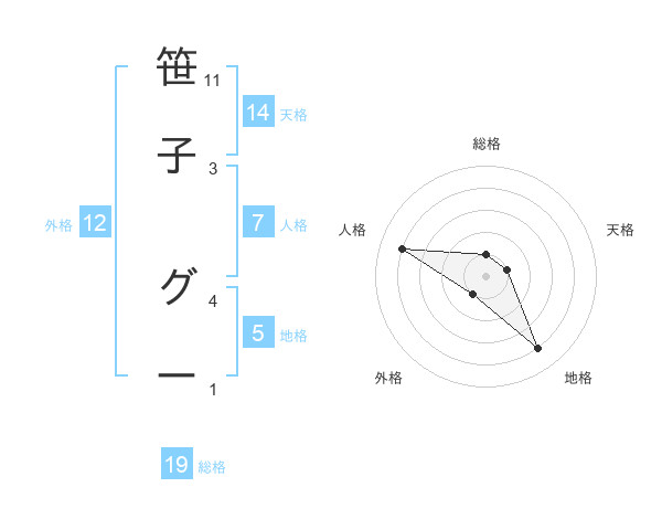 笹子 グーさんの地格は5画の4点!