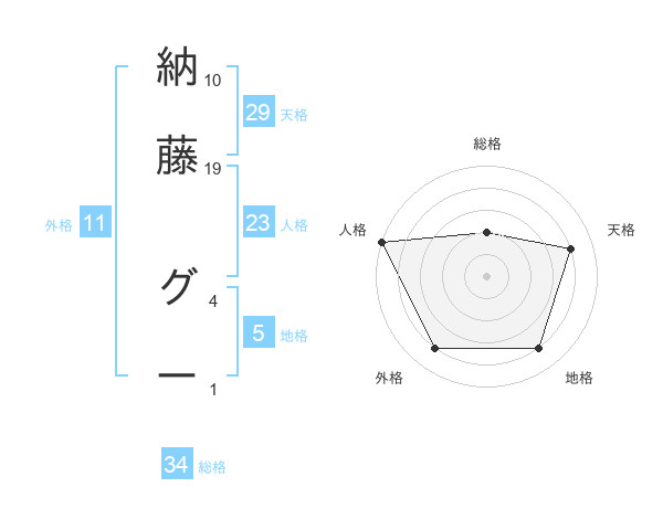 納藤 グーさんの天格は29画の4点!
