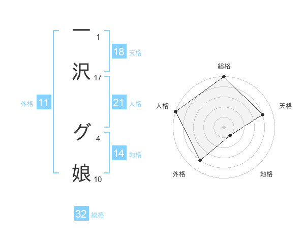 一沢 グ娘さんを姓名の画数から五運を鑑定