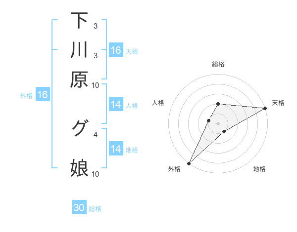 下川原 グ娘さんを姓名の画数から五運を鑑定