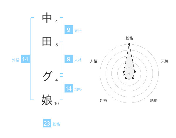 中田 グ娘さんを姓名の画数から五運を鑑定