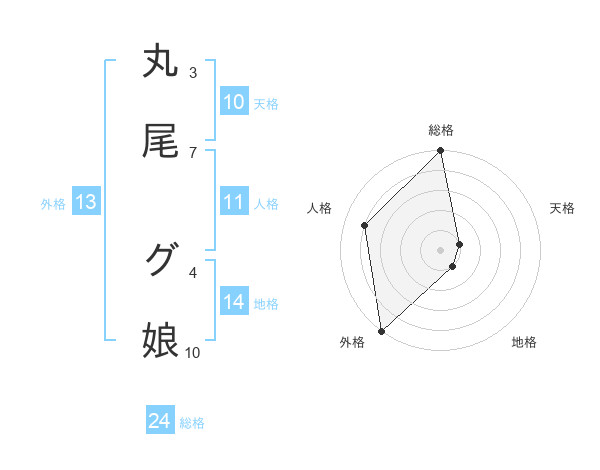 丸尾 グ娘さんの総格は24画の5点!