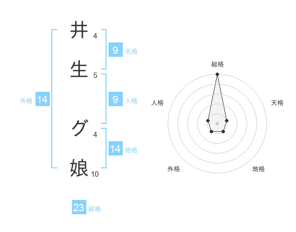 井生 グ娘さんの総格は23画の5点!