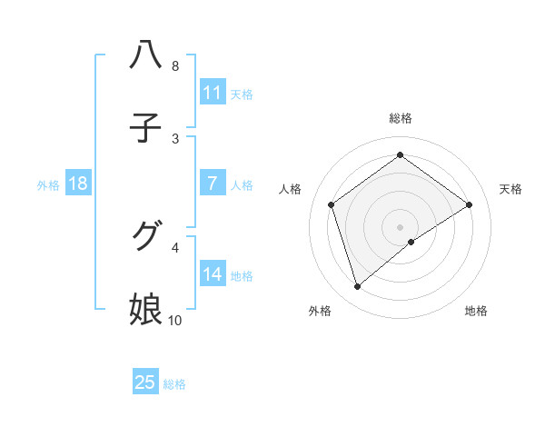 八子 グ娘さんを姓名の画数から五運を鑑定