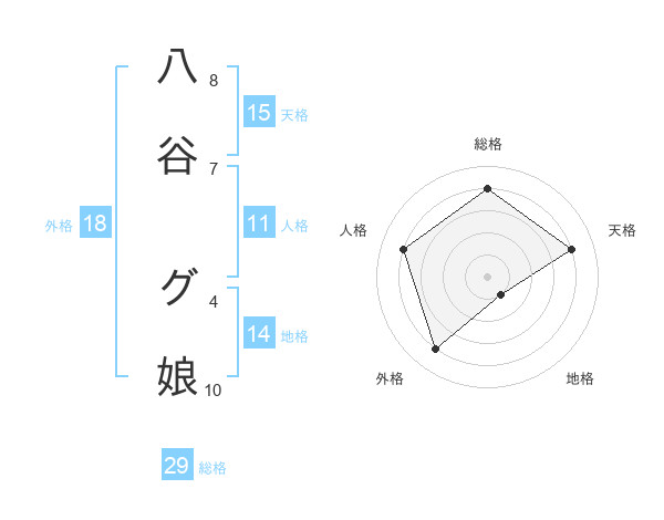 八谷 グ娘さんを姓名の画数から五運を鑑定