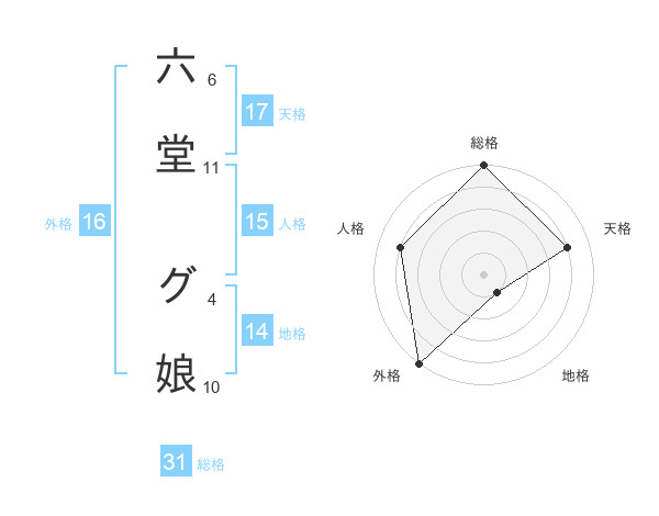 六堂 グ娘さんの総格は31画の5点!
