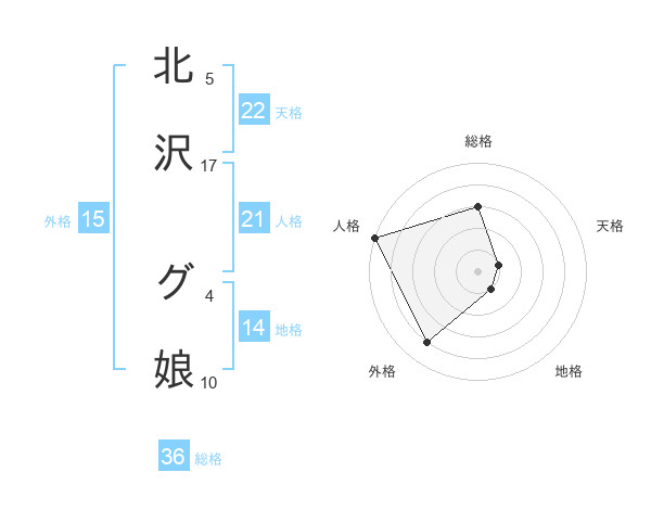 北沢 グ娘さんを姓名の画数から五運を鑑定