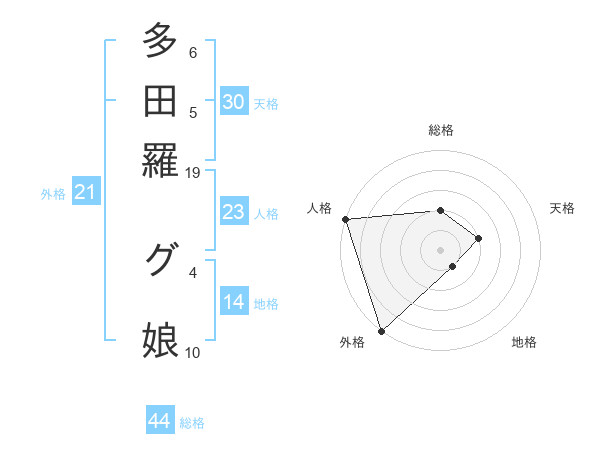 多田羅 グ娘さんを姓名の画数から五運を鑑定