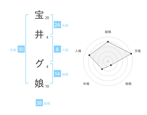宝井 グ娘さんを姓名の画数から五運を鑑定