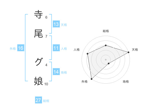 寺尾 グ娘さんの天格は13画の5点!