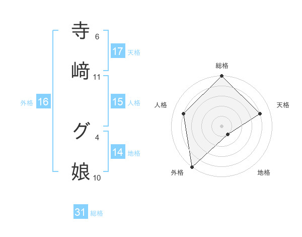 寺﨑 グ娘さんの総格は31画の5点!