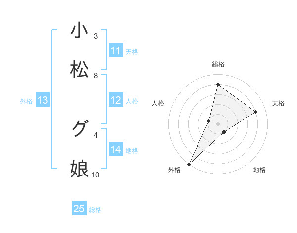 小松 グ娘さんの総格は25画の4点!