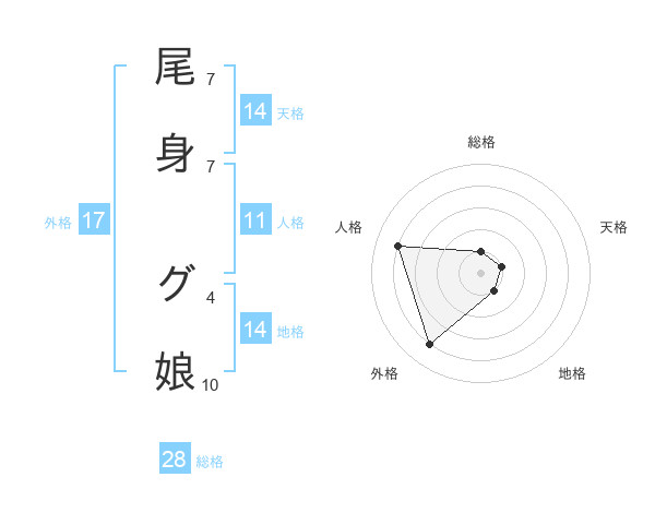 尾身 グ娘さんを姓名の画数から五運を鑑定