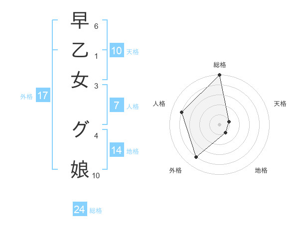 早乙女 グ娘さんの総格は24画の5点