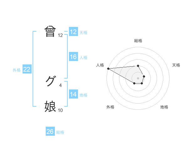 曾 グ娘さんの総格は26画の2点!