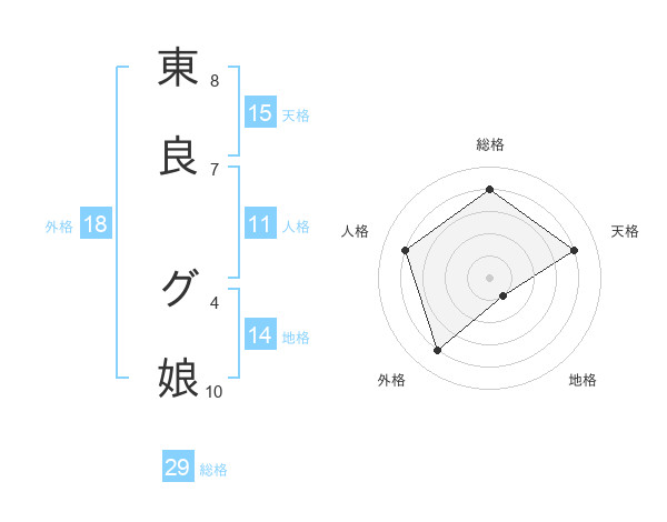 東良 グ娘さんを姓名の画数から五運を鑑定