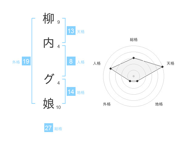 柳内 グ娘さんを姓名の画数から五運を鑑定