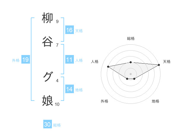 柳谷 グ娘さんを姓名の画数から五運を鑑定