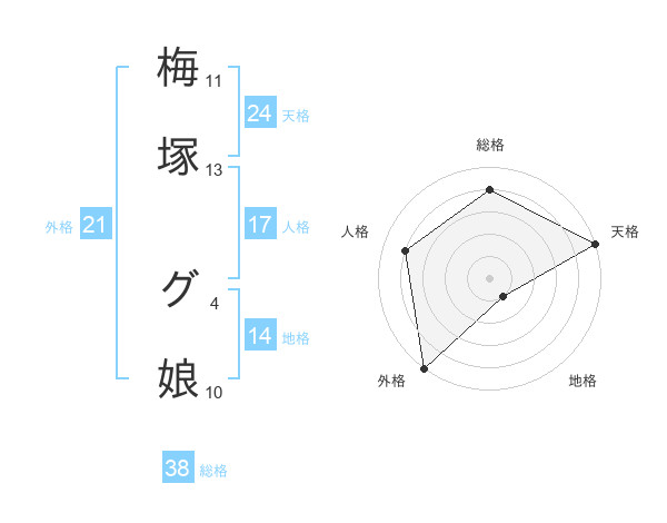 梅塚 グ娘さんを姓名の画数から五運を鑑定