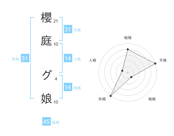 櫻庭 グ娘さんの総格は45画の4点!