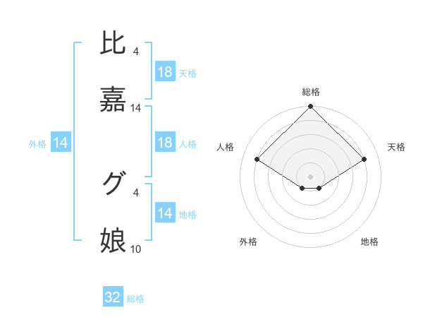 比嘉 グ娘さんの総格は32画の5点!