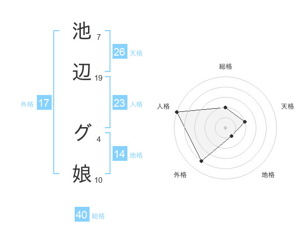 池辺 グ娘さんの総格は40画の2点!
