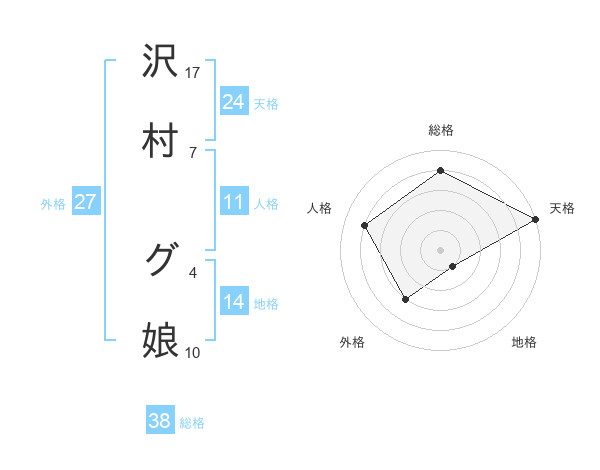 沢村 グ娘さんを姓名の画数から五運を鑑定