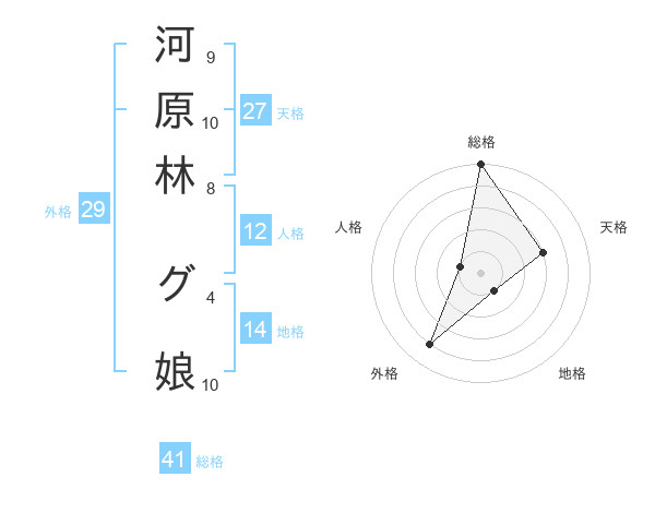 河原林 グ娘さんの総格は41画の5点!