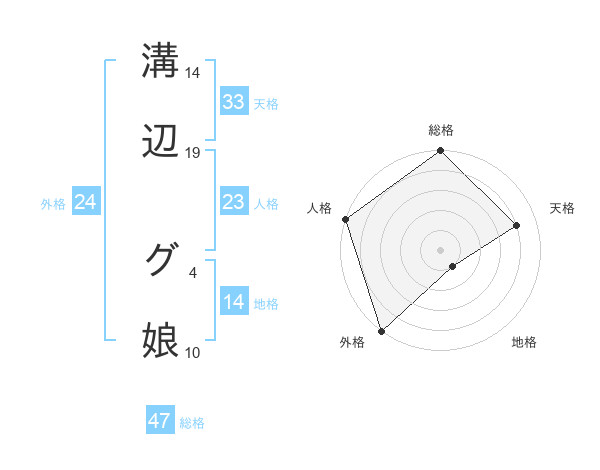 溝辺 グ娘さんの総格は47画の5点!