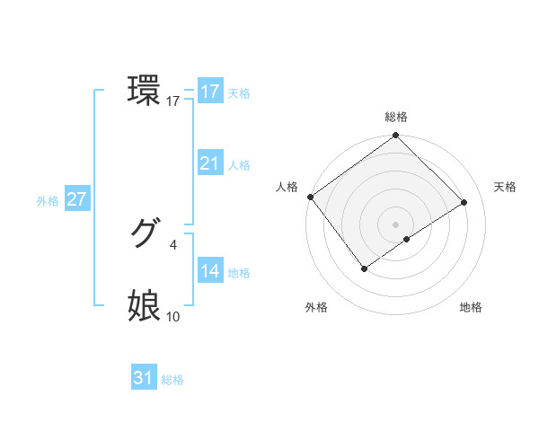 環 グ娘さんの天格は17画の4点!