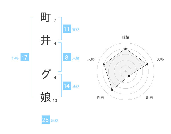 町井 グ娘さんを姓名の画数から五運を鑑定