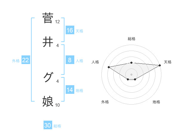 菅井 グ娘さんを姓名の画数から五運を鑑定