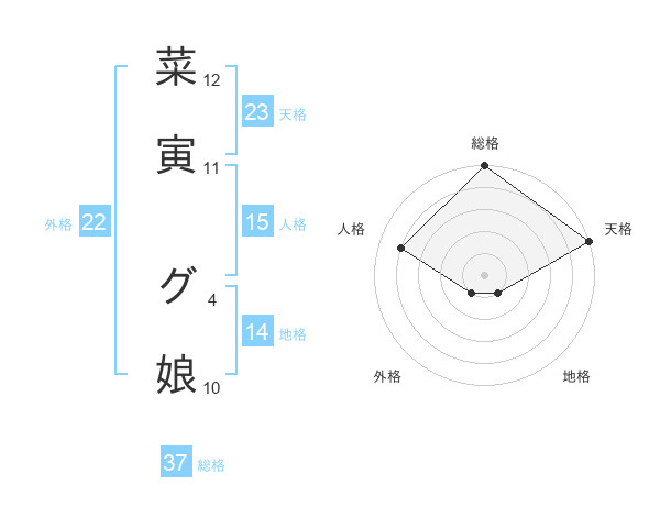 菜寅 グ娘さんの総格は37画の5点!