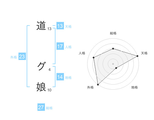 道 グ娘さんの総格は27画の3点!