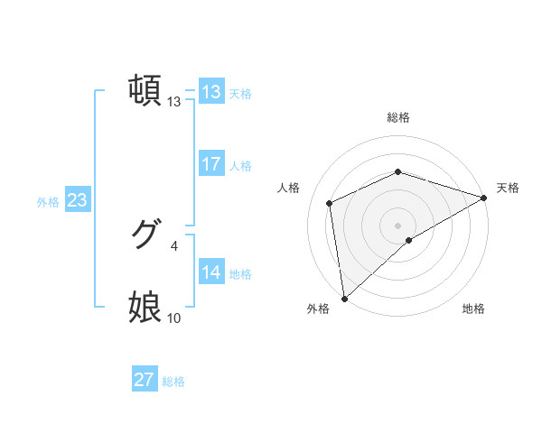 頓 グ娘さんの天格は13画の5点!