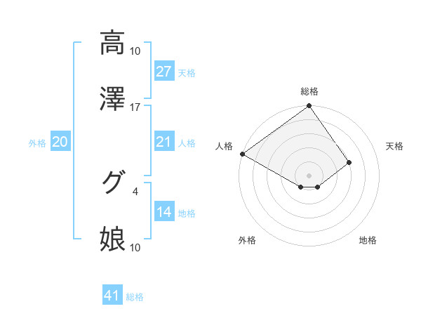 高澤 グ娘さんの総格は41画の5点!