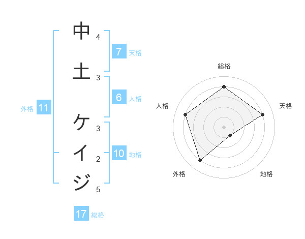 中土 ケイジさんの総格は17画の4点!