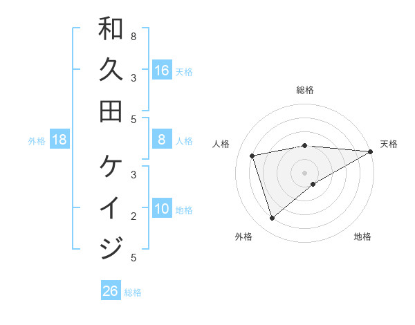 和久田 ケイジさんの天格は16画の5点