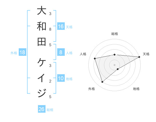 大和田 ケイジさんを姓名の画数から五運を鑑定